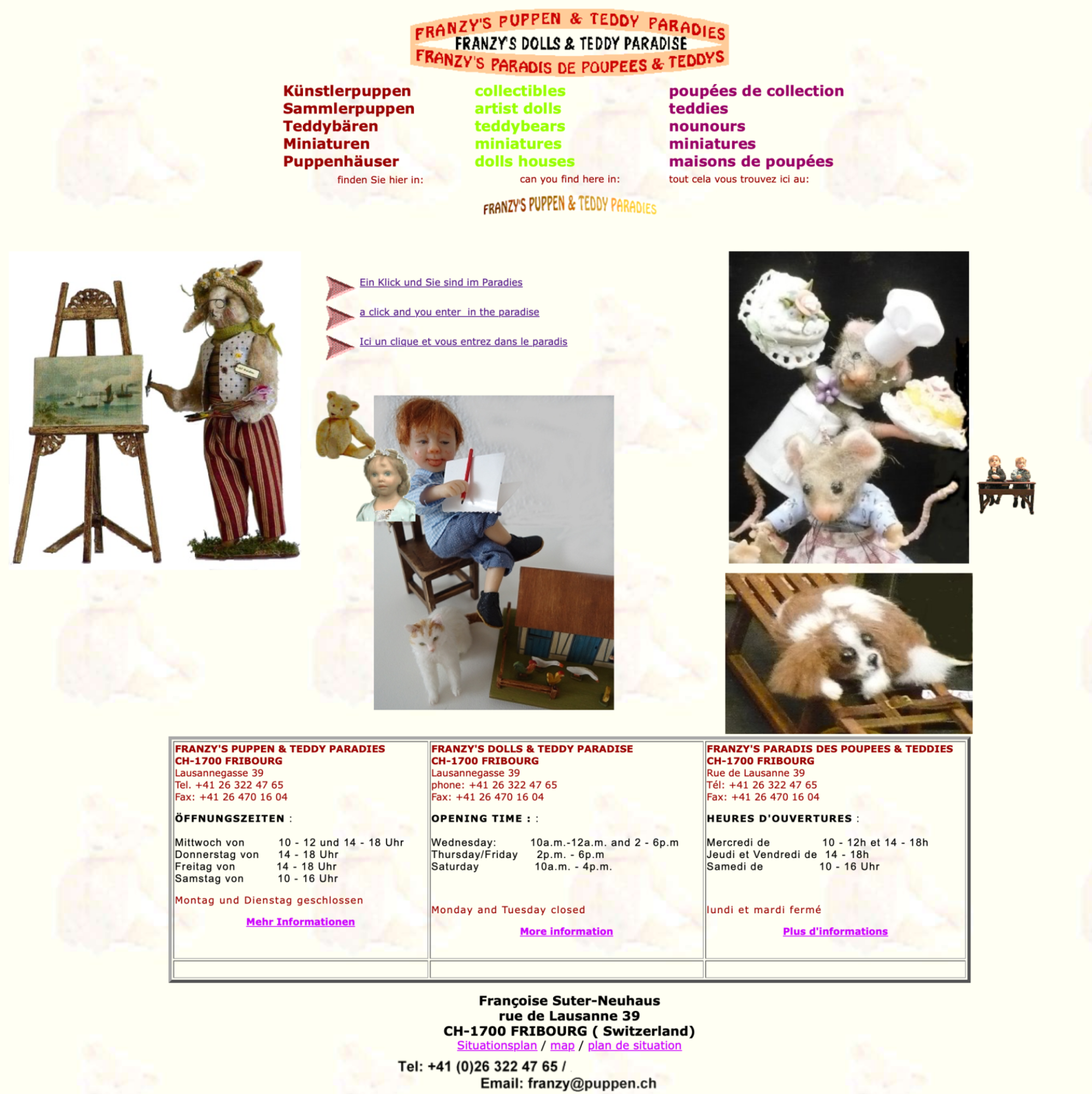 PUPPEN & TEDDY PARADIES ÖFFNUNGSZEITEN : Montag und Dienstag geschlossen |